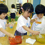 幼児期は模倣を中心とするところから、さらに「自分で行動し、自分で考え、自分を主張し、自分を作り上げる」という脳の配線を作り上げる時です。言い換えると、何にでも興味を持つようになり、「考えることが芽生え」「やる気をおこす」ようになるのです。また、知識の詰め込みをするのではなく、知能(考える)を良くしておくことが大切であると考えています。「なぜ」「どうして」の質問がたくさんできるようになり、これを機会にご家庭においては様々な学習フィールド(動物園や博物館)へ行き、観察力や思考力を高め、知識に発展させていくことができます。お子様が自信をもって小学校へ進んでいただける内容です。小学校受験をお考えの場合にも、準備としてお勧めいたします。