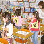 ・年中クラスでは、お子様が楽しく知識を学べるよう、ペーパーワークを含め、工夫されたオリジナル教材で行います。また授業はプロジェクターによる電子黒板を使用し、大変見やすく、わかりやすく指導しております。年中クラスでのペーパーは、基本を丁寧に指導し、色々な興味を引き出していきます。これが年長になってから、大きな力につながります。
